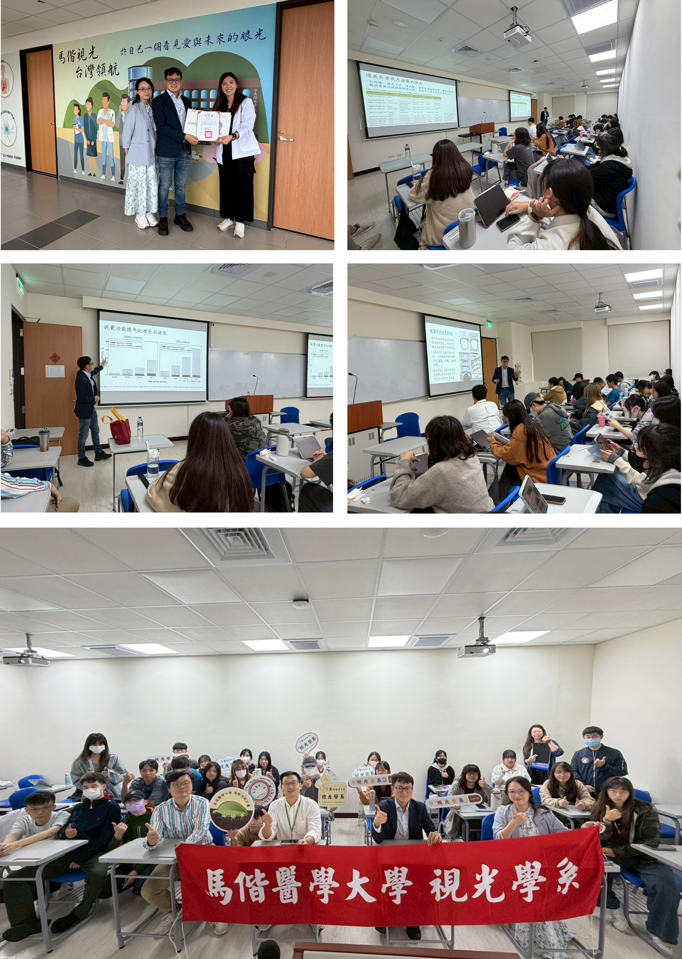 本公司吳杰霖博士很榮幸受 呂婉榕副教授 邀請,前往馬偕醫學大學視光學系授課「銀髮族視力保健」專題。課程由 林祐毅助理教授 與 吳函芳助理教授 協助安排與接待,使整體流程順暢且溫馨,特此致上誠摯謝意。
